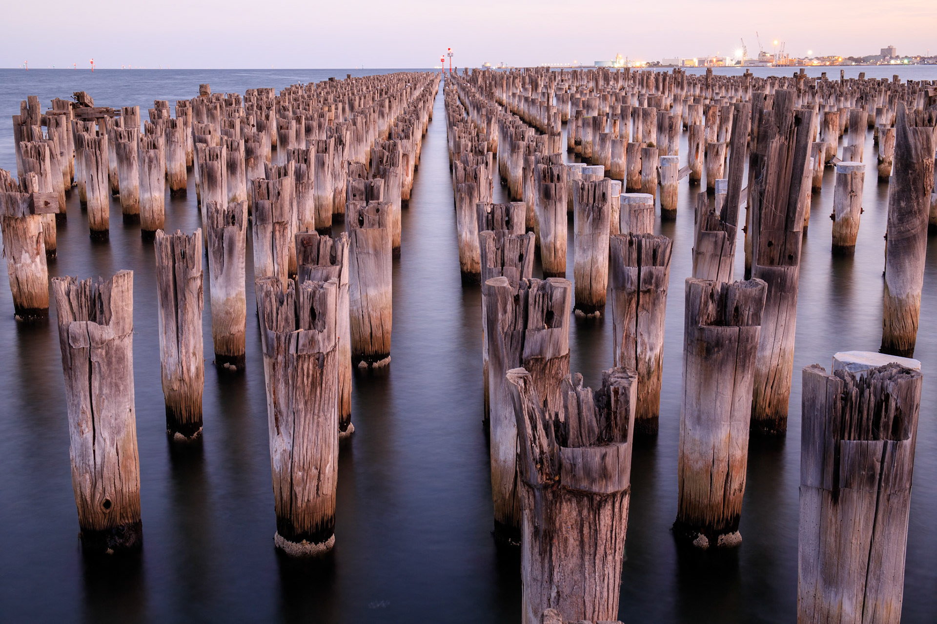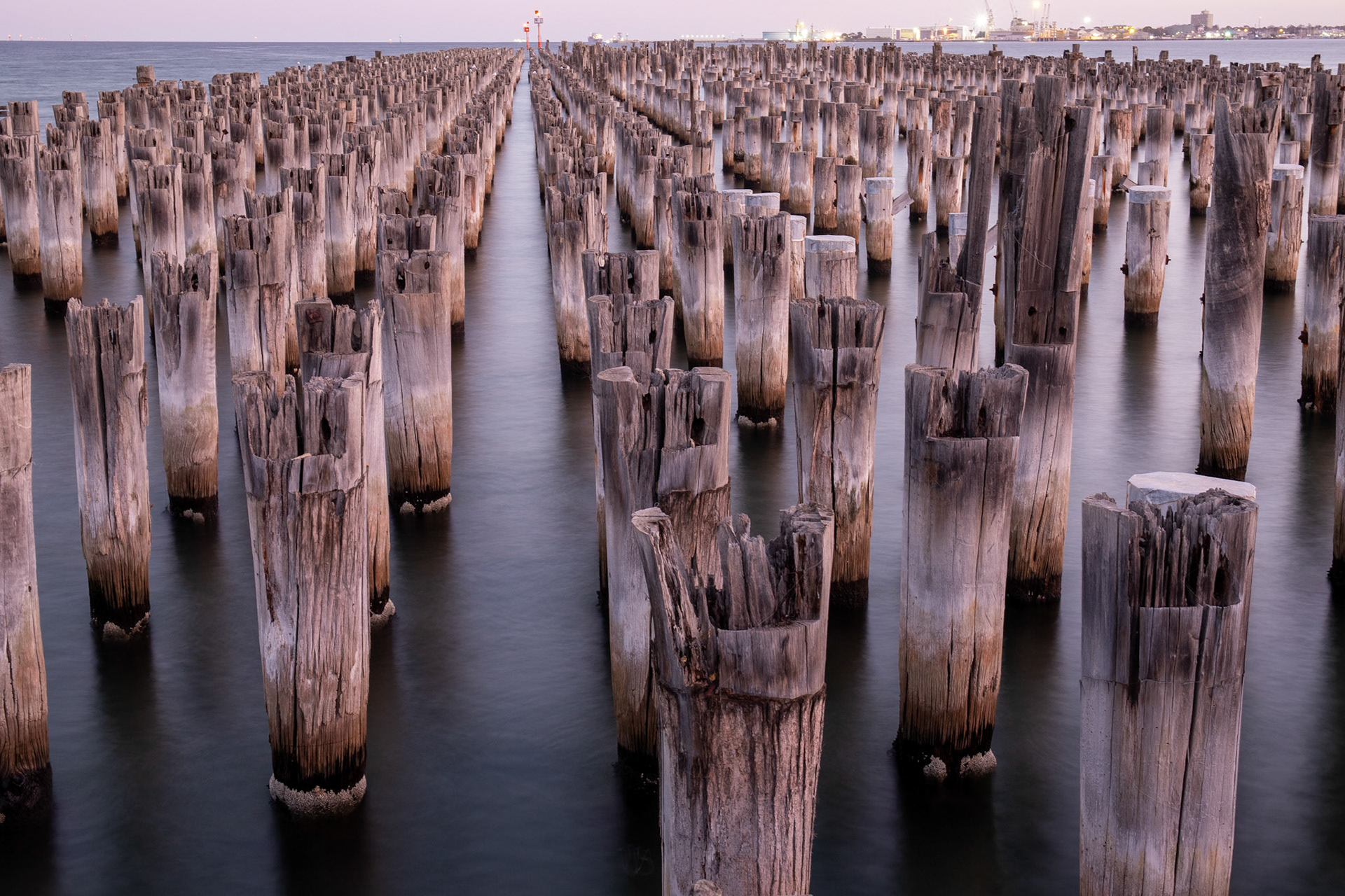 Sunset at Princess Pier, the Yarra River & Flinders St Station